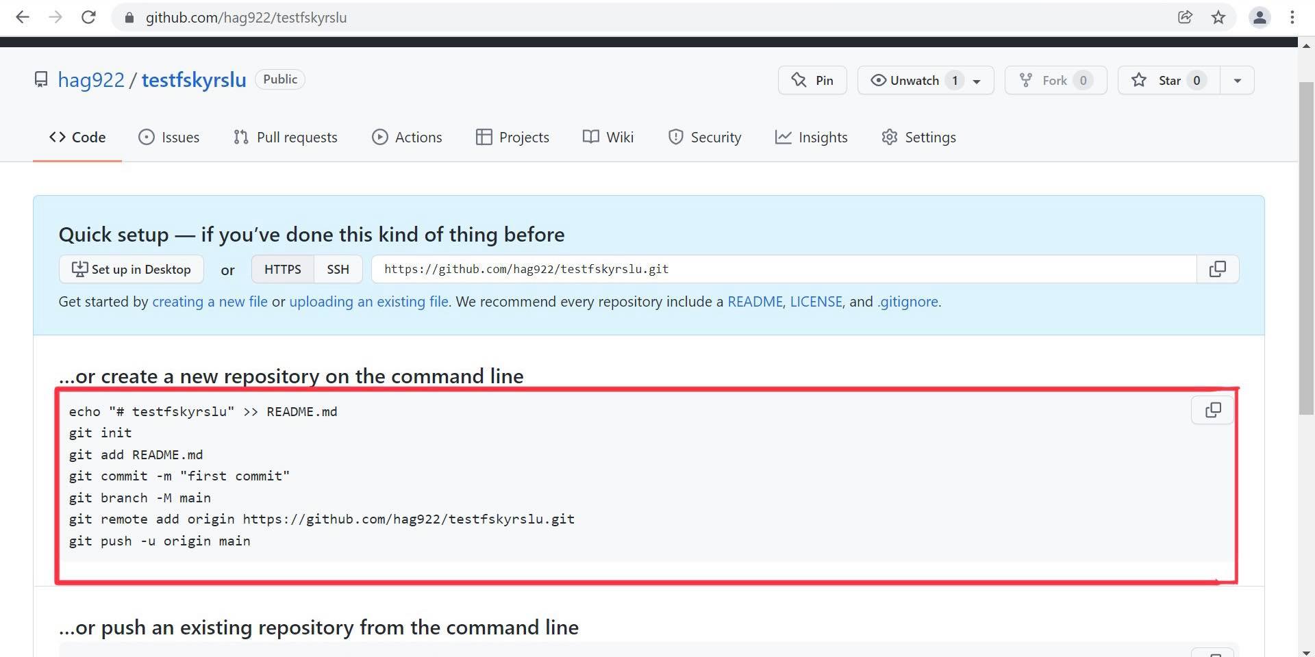 After you created your repository on Github, this page should have popped up:
