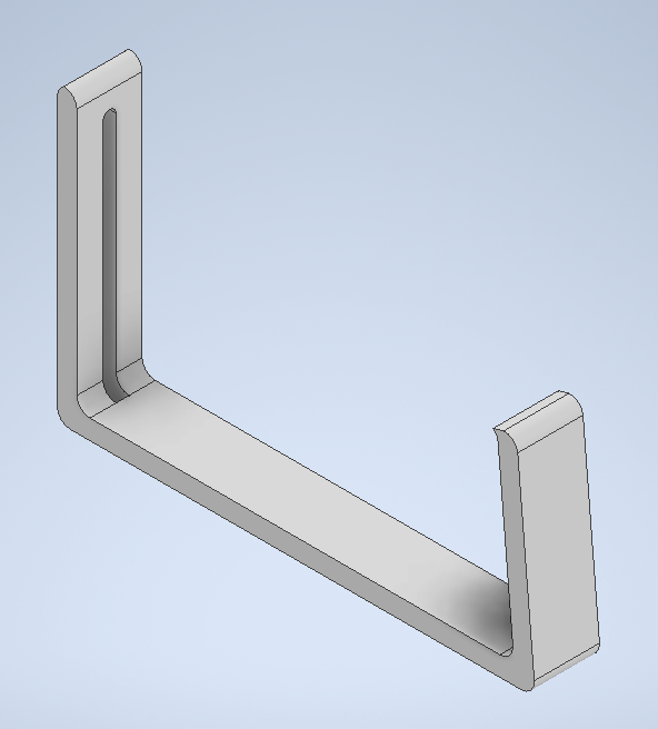 First I had to whip up a design for the holder. I used the the Fusion 360 program for the drawing. I started with a scetch with a rough outline of how I wanted the object to look and extruded that to one cm. I then added the slits by connecting two circles and extruding through the back. Lastly I added some fillets on the sharp edges to give the holder some finesse. The design can be seen here below: