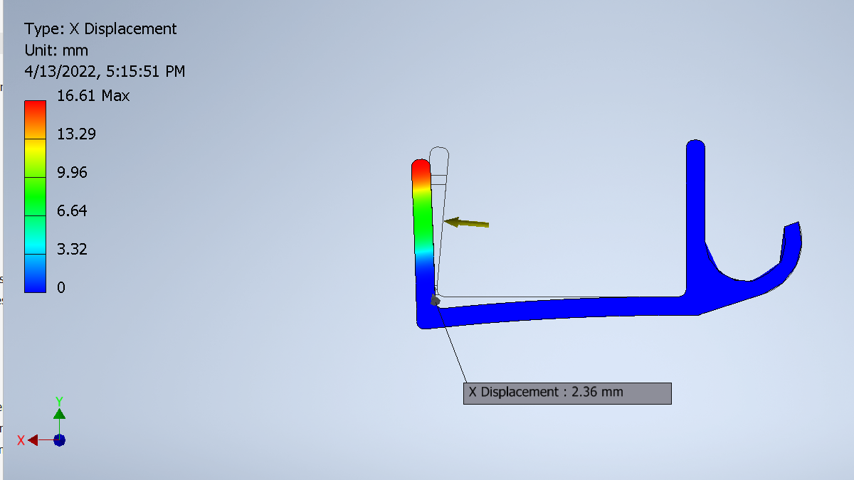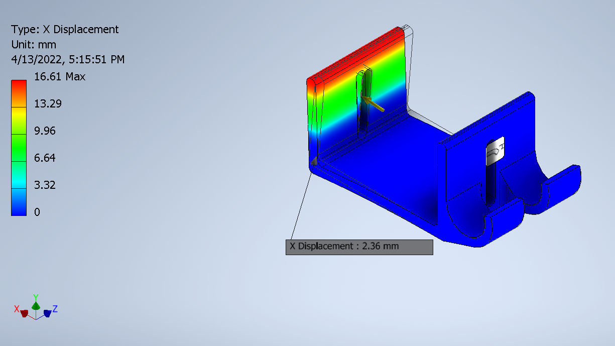 After feedback from my teacher I degided to make the object again, this time adding to the size, opting to increase the infill to 20% and adding two "hooks" on the end so that I could wrap cords around, creating a more tidy soloution. Finally I also stress tested the holder, adding the equivalent of around 30 kg to it, and putting the force on both the bottom and the sides.