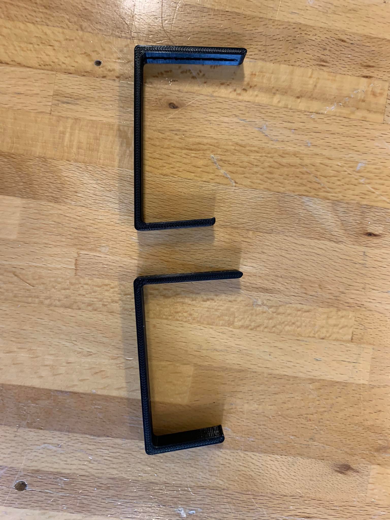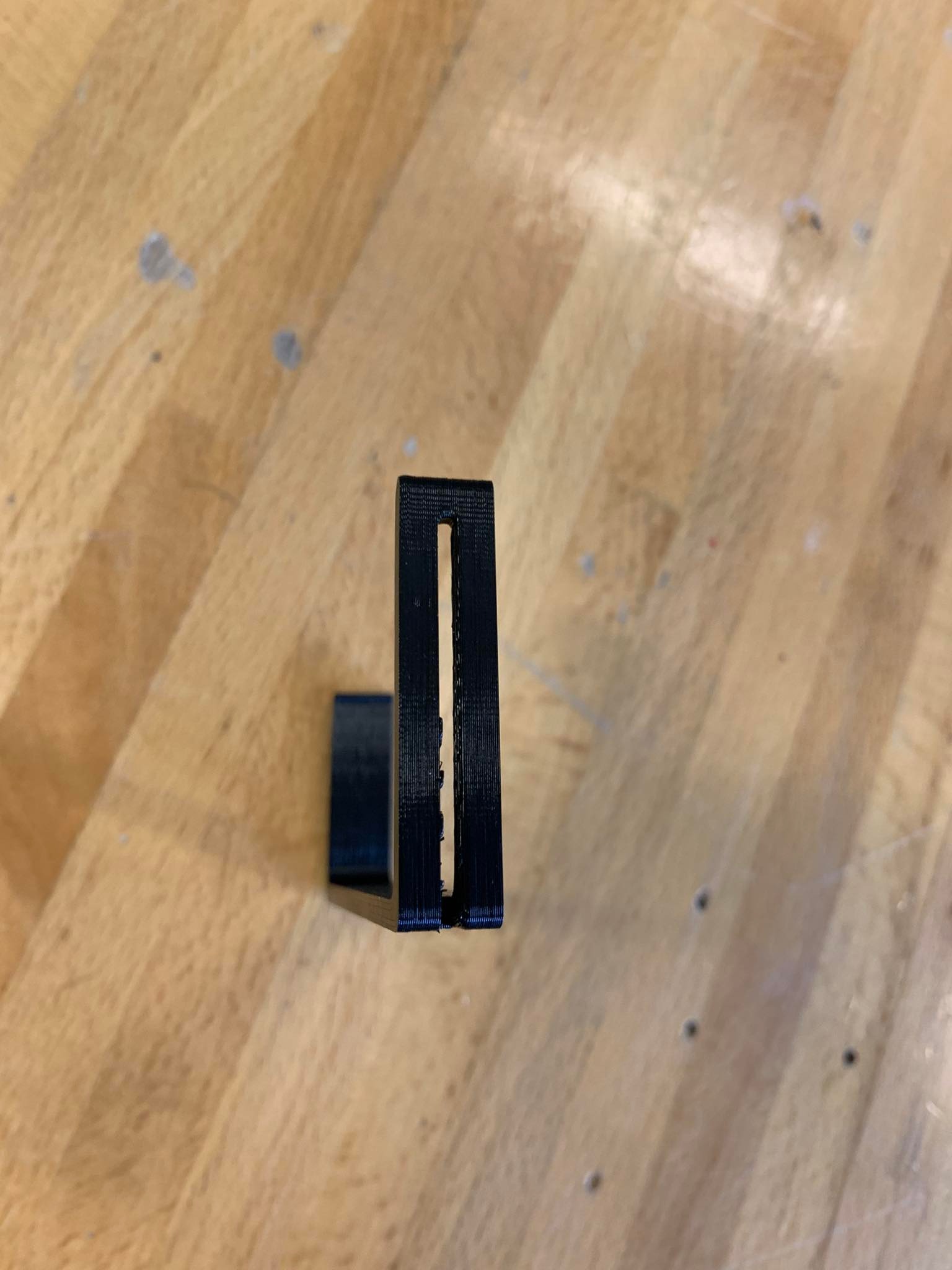 The thought process behind the design was as follows: I made a slight decline on the right side so that it would be possible for the holder would press up against the underside of my table. I also added the slits you can see on the back so that if necessary it would be possible to fasten the unit with a screw to keep it from falling.