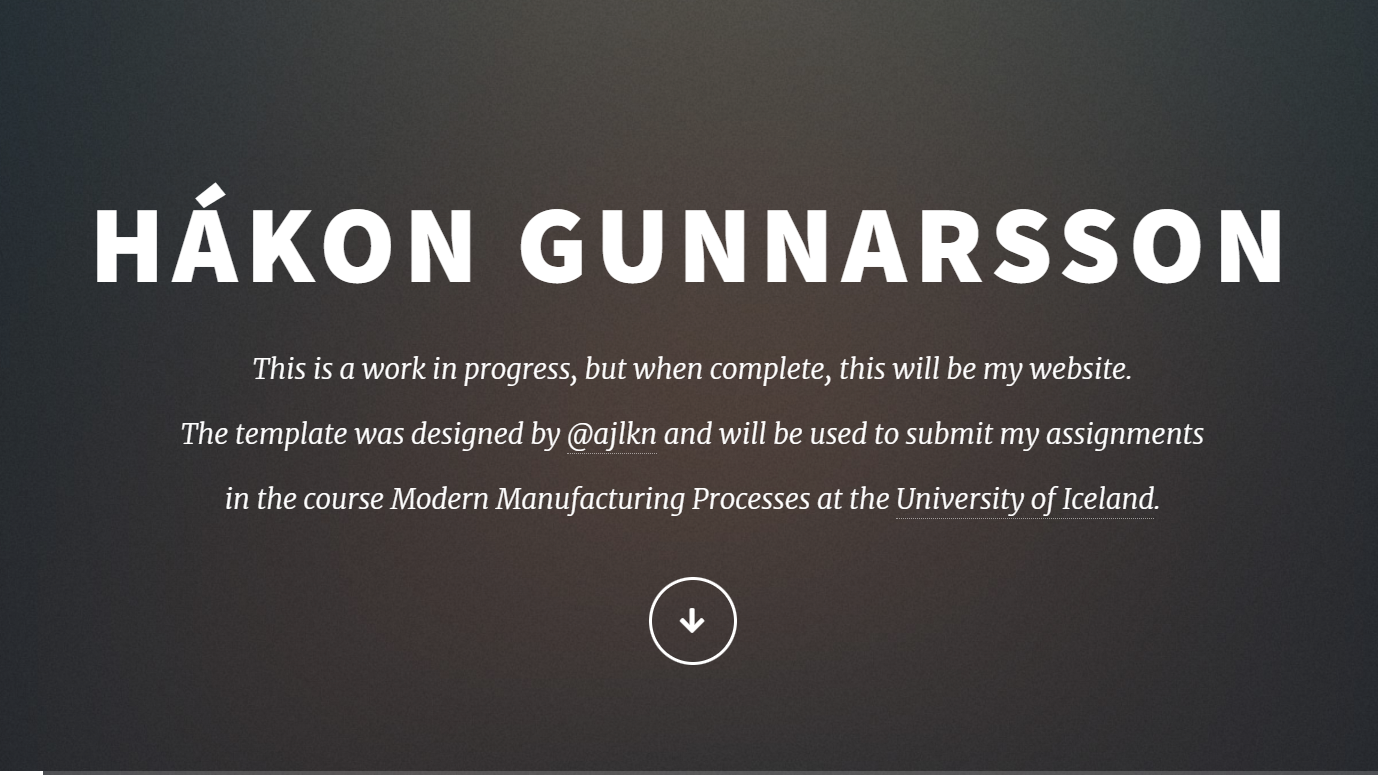 My first assignment in the course, which consisted of setting up this very page.